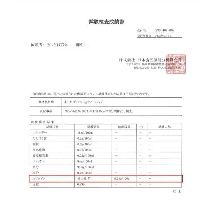 焙煎あしたばTEA(明日葉茶)は、「カフェイン」を含んでいないお茶になります。